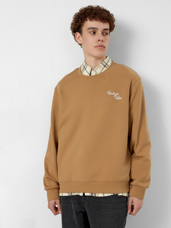 Надпись "Винтажная атмосфера" придает модели индивидуальность и трендовый акцент. Если вы хотите купить бежевый мужской свитшот, который сочетает качественные материалы, продуманный дизайн и универсальность, эта модель станет отличным выбором.