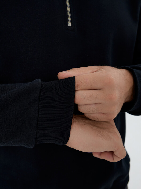 Длинные рукава дополнены эластичными манжетами, которые хорошо фиксируются на запястьях. Низ также оформлен эластичной резинкой. Внутренние швы обработаны хлопковой тесьмой, что предотвращает натирание и повышает долговечность вещи. Эта модель идеально подходит для повседневной носки и сочетается с любым денимом или брюками.