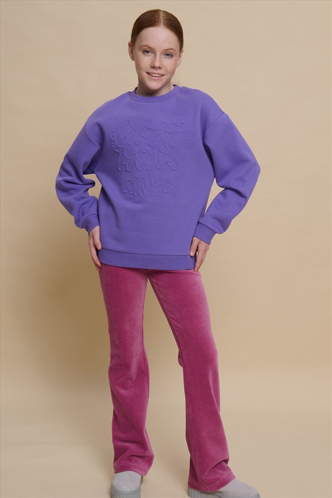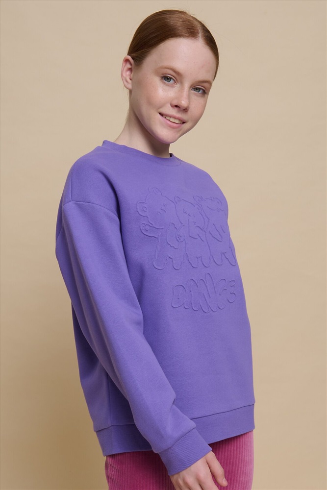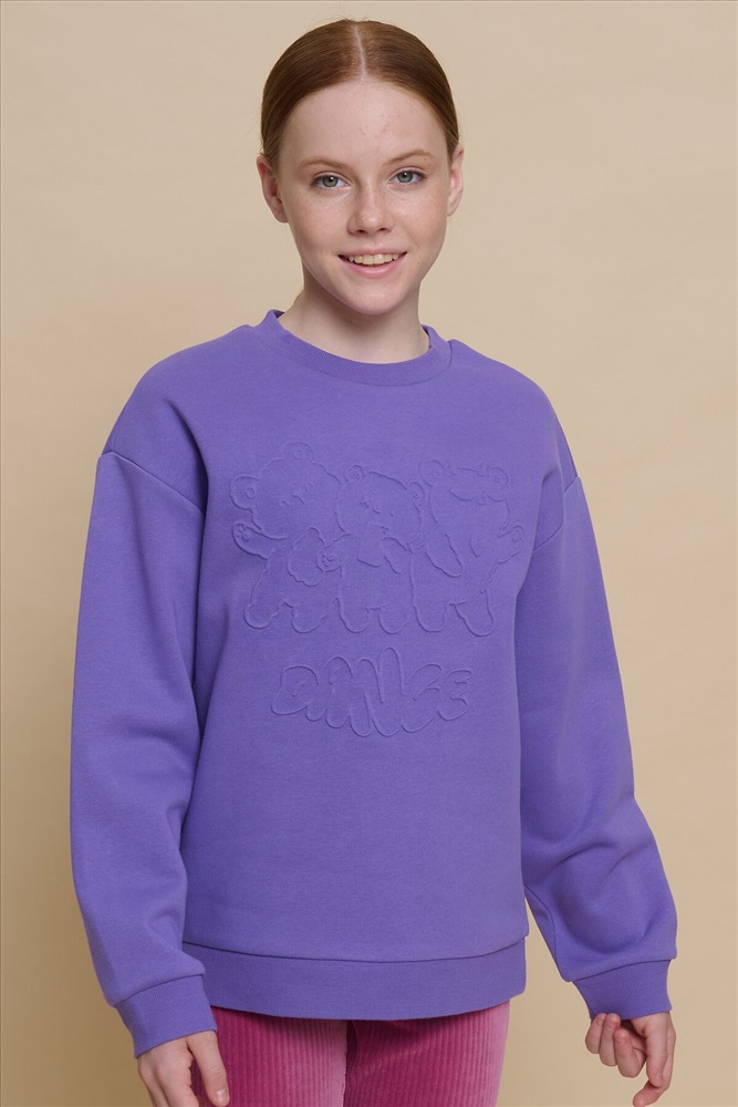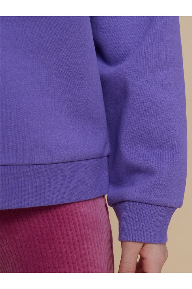 Over size. Базовый свитшот укороченной длины, из смесового футерованного полотна с начесом. Свободный, прямого силуэта, с мягким, очень спущенным плечом и щелевидной проймой. Манжета по низу изделия, низу рукава, а также обтачка горловины выполнены из эластичной рибаны