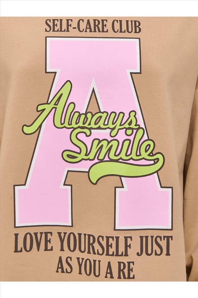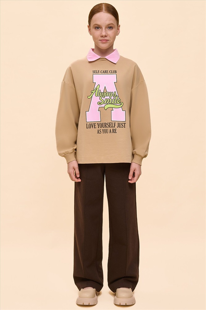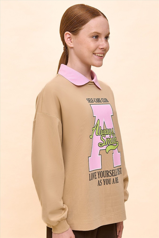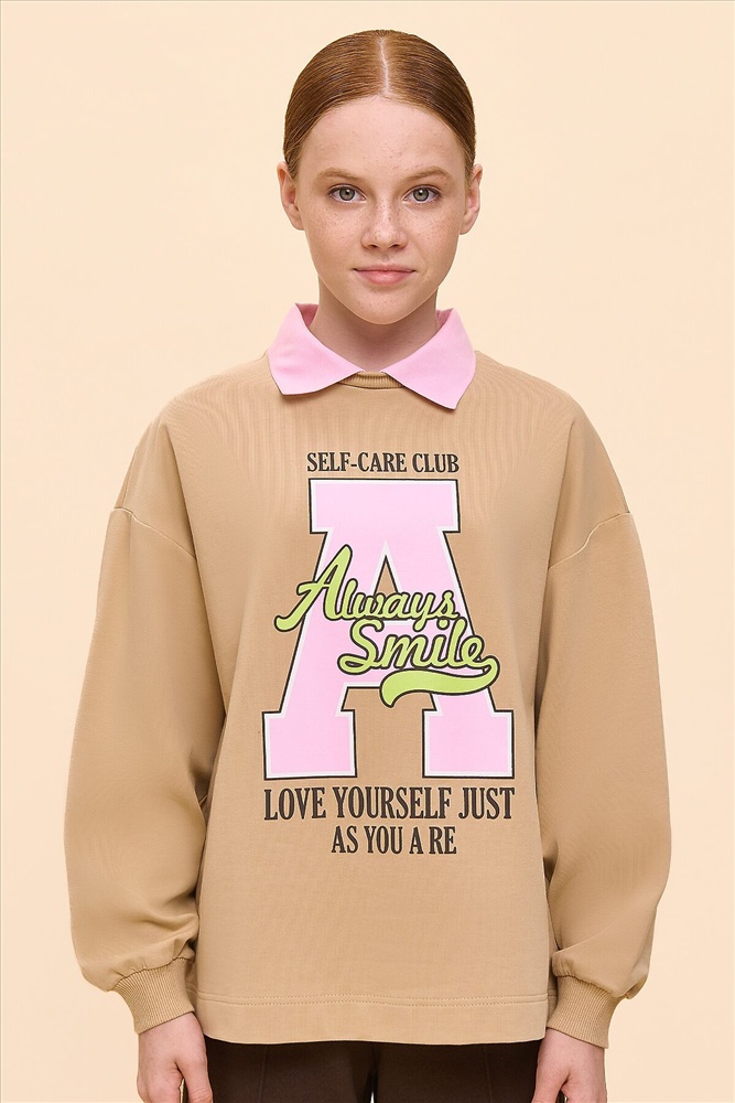 Свитшот из футера для девочки. Теплая, мягкая, приятная на ощупь ткань с 95% хлопка в составе – почти не мнется, сохраняет форму даже после частых стирок. Воротник из рибаны – плотно прилегает и не давит, отлично тянется. Свободной крой и спущенное плечо – комфортный и модный оверсайз. Яркий позитивный принт для улыбки и настроения на целый день. Отлично сочетается с брюками-палаццо, джоггерами. Подходит на каждый день, для учебы и активного образа жизни.