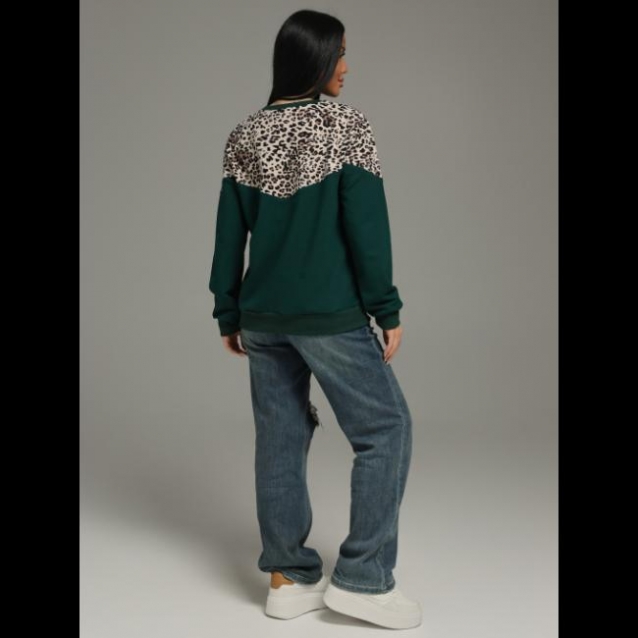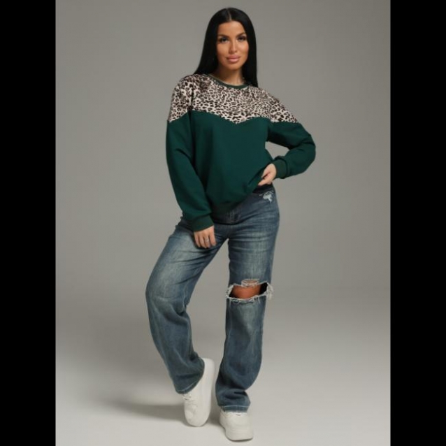 Свитшот прямого силуэта, c длинным втачным рукавом на манжете. Полочка и спинка с фигурными кокетками.
