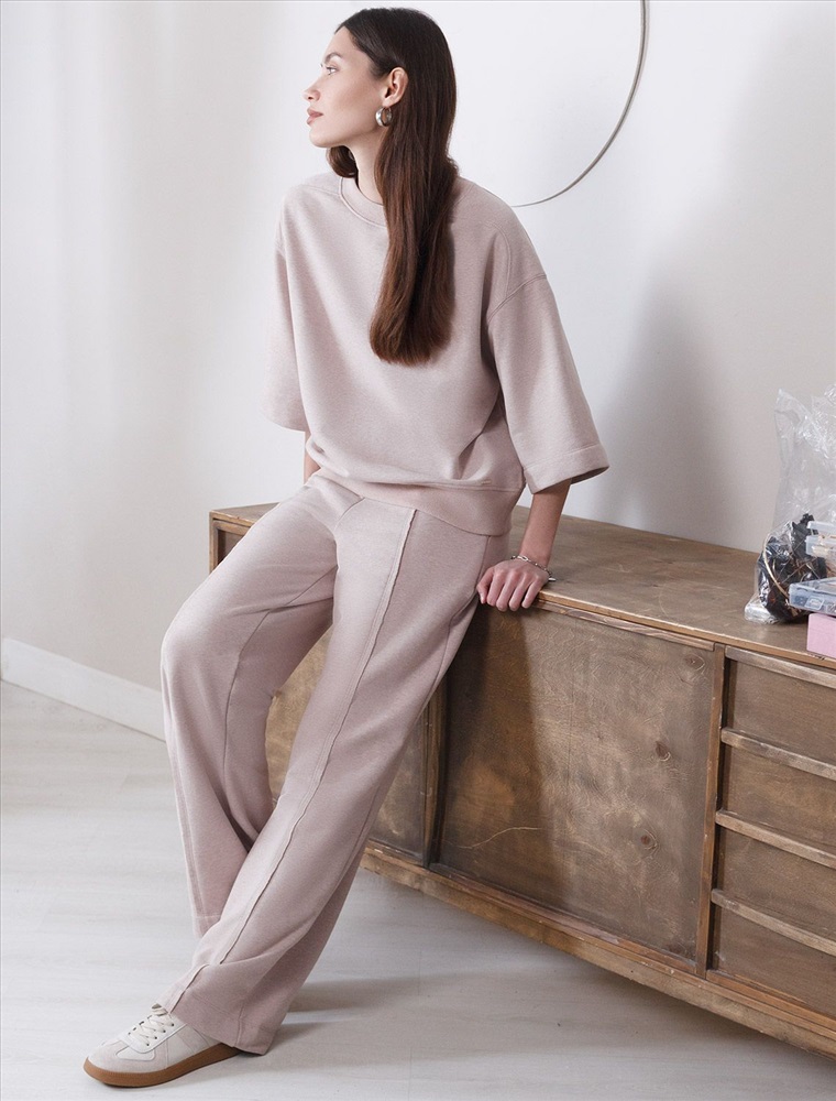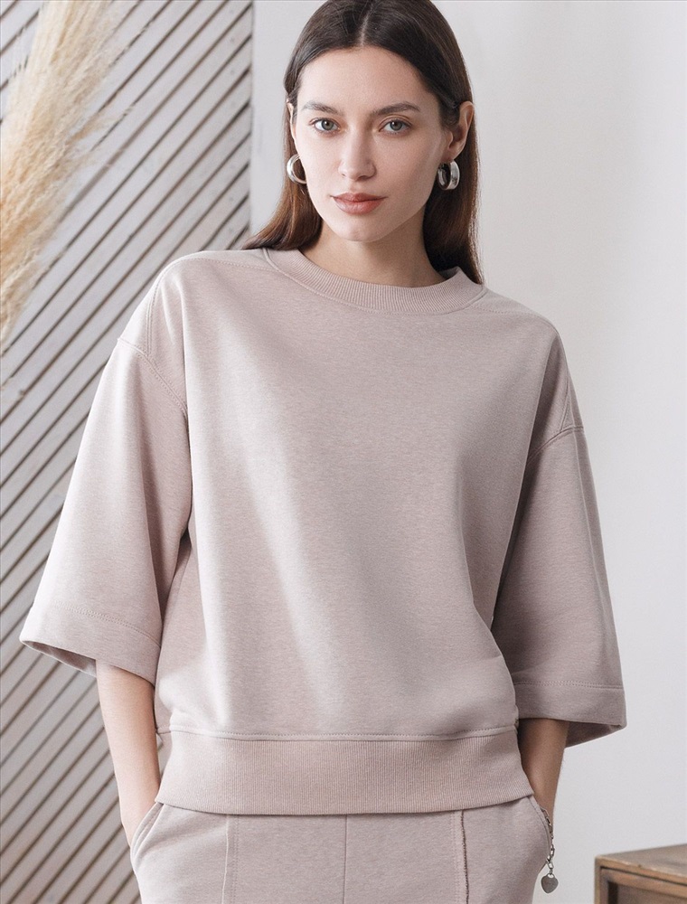 Свободный свитшот цвета макиато с эффектом меланж выполнен из мягкого петельчатого футера двухнитки с добавлением эластана, что обеспечивает комфортную посадку и комфорт. Материал отличается мягкостью и приятной текстурой, позволяя коже дышать и обеспечивая максимальное удобство при носке, а так же хорошей износостойкостью и сохраняет форму даже после многочисленных стирок. Круглый ворот и широкие рукава средней длины придают свитшоту стильный и современный вид и делают образ расслабленным и непринужденным, такой вариант отлично сядет на большие размеры, подчеркивая достоинства фигуры. .Джемпер идеально подходит для повседневной носки и отлично подойдет тем, кто ценит удобство и свободу движений без компромиссов по стилю. Этот свитшот станет отличным выбором в прохладную погоду в комплекте с бомбером D49,141 или уютным дополнением к домашнему образу в комплекте с брюками D44.157