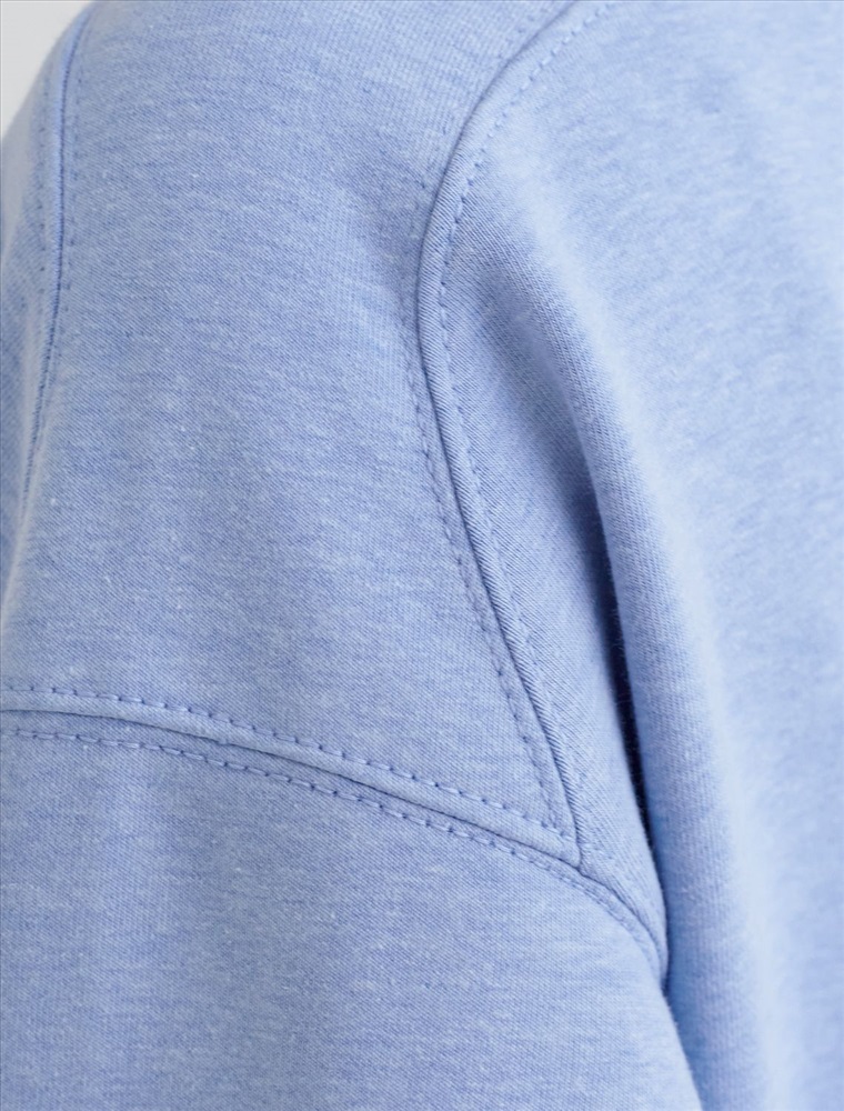 Состав: 80%Хлопок 20%ПЭ; Плотность: 320 Г/м2 Свободный свитшот голубого цвета с эффектом меланж выполнен из мягкого петельчатого футера двухнитки с добавлением эластана, что обеспечивает комфортную посадку и комфорт. Материал отличается мягкостью и приятной текстурой, позволяя коже дышать и обеспечивая максимальное удобство при носке, а так же хорошей износостойкостью и сохраняет форму даже после многочисленных стирок. Круглый ворот и широкие рукава средней длины придают свитшоту стильный и современный вид и делают образ расслабленным и непринужденным, такой вариант отлично сядет на большие размеры, подчеркивая достоинства фигуры. .Джемпер идеально подходит для повседневной носки и отлично подойдет тем, кто ценит удобство и свободу движений без компромиссов по стилю. Этот свитшот станет отличным выбором в прохладную погоду в комплекте с бомбером D49,141 или уютным дополнением к домашнему образу в комплекте с брюками D44.157