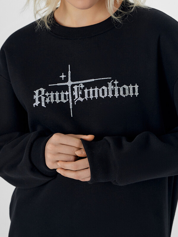Рукав длинный, спущенный. Горловина обработана обтачкой из рибаны. Манжеты и пояс из рибаны.