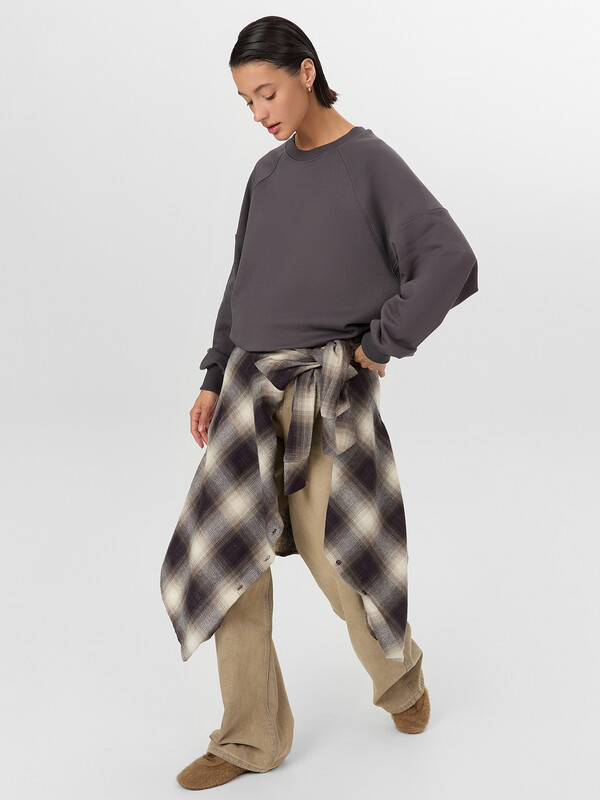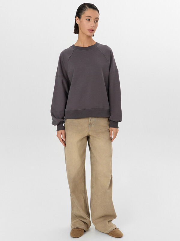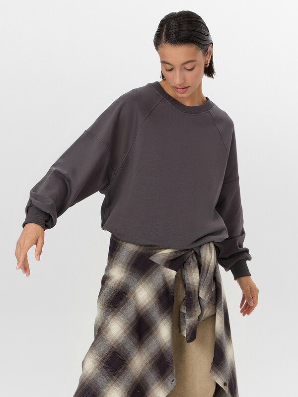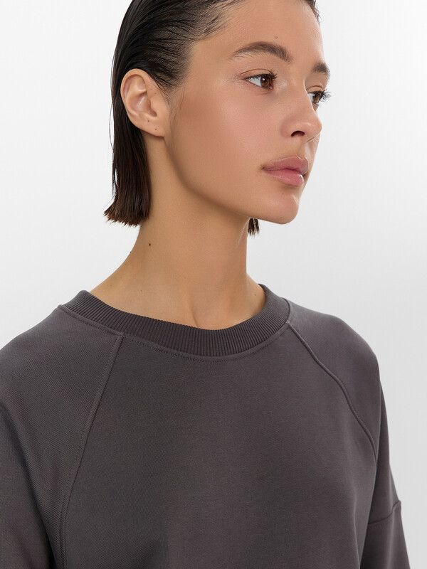 Свитшот женский серый — это трендовая модель для тех, кто ценит уют и современный стиль. Объемный силуэт со спущенной линией плеча и рукавами реглан обеспечивает максимальную свободу движений и расслабленный вид. Мягкий футер с теплым подчесом дарит тепло и нежное прикосновение к коже, делая свитшот идеальным для прохладных дней. Классический круглый вырез горловины и широкий пояс из рибаны по низу добавляют модели лаконичность и завершенность.