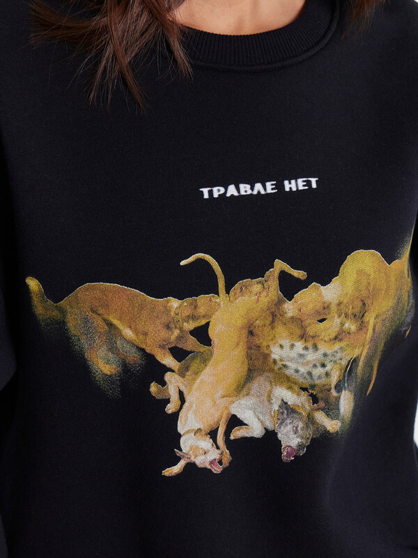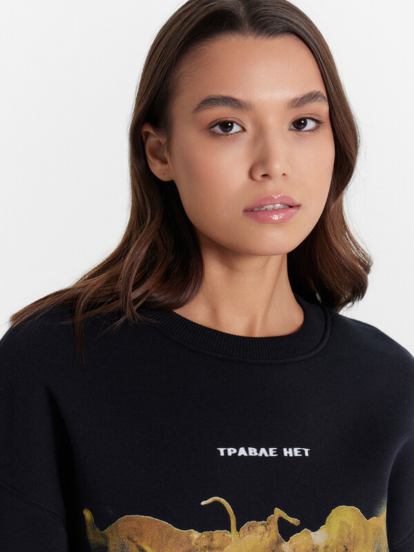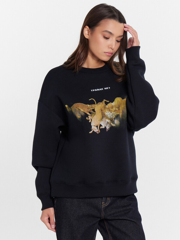 Джемпер (свитшот) oversize, перед и спинка цельнокроенные, длиной до линии бедер.