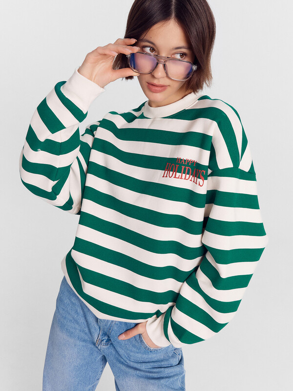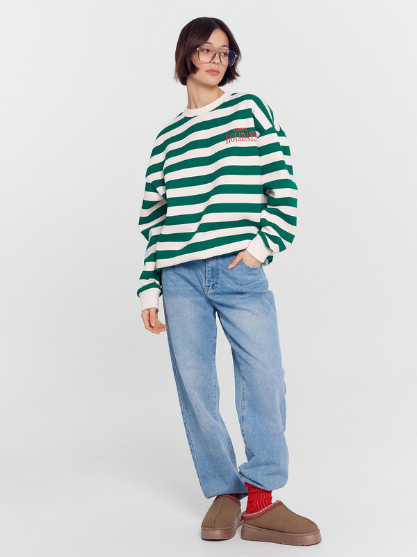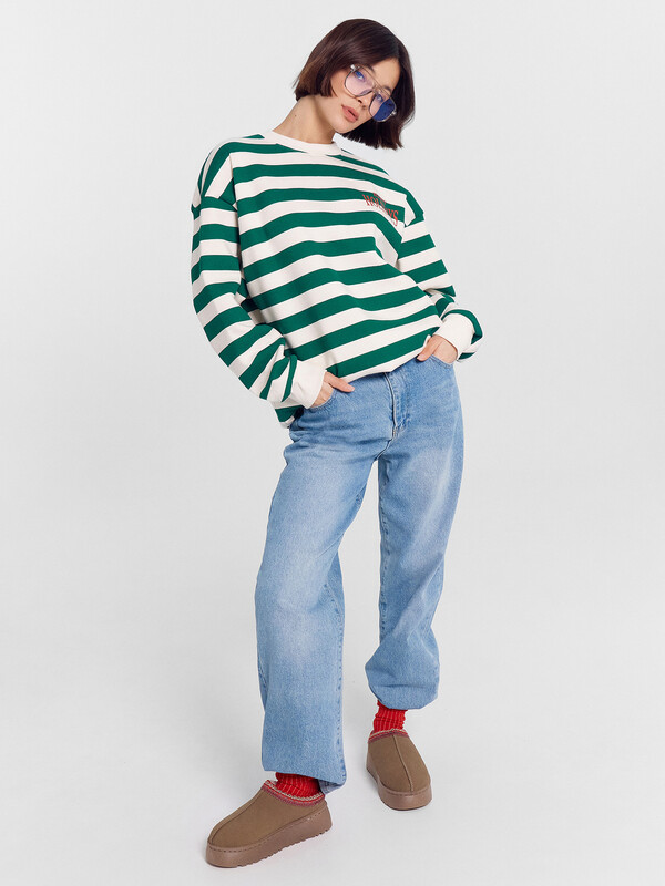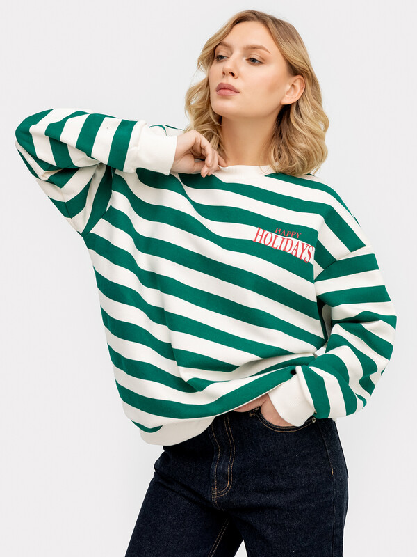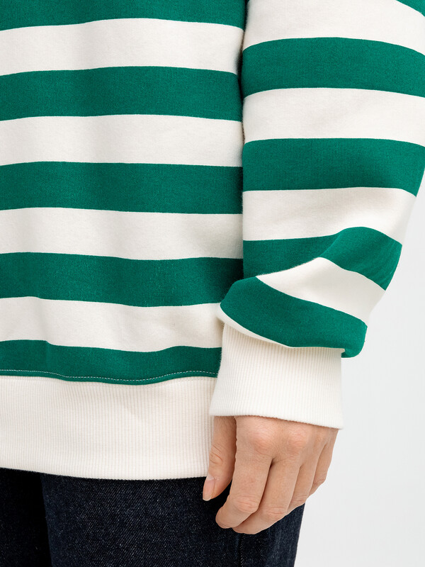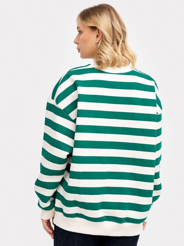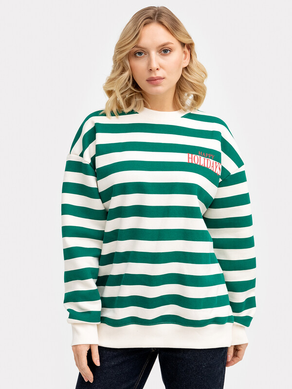 Джемпер свободного силуэта. Горловина округлой формы обработана обтачкой из рибаны. Рукава втачные длинные с отрезными манжетами из рибаны. По низу джемпера отрезной пояс из рибаны, отстрочен. 73% хлопок; 27% полиэстер Комментарии к товару