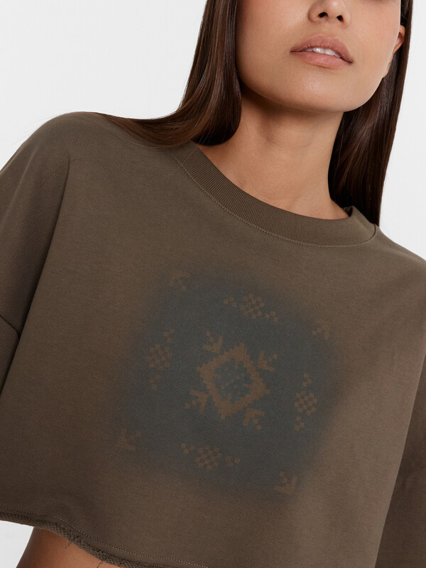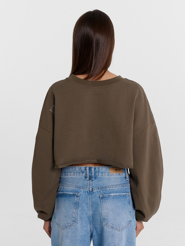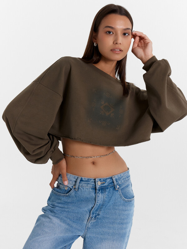 Горловина круглой формы, обтачка горловины широкая из рибаны. Плечо спущено, пройма углублена. Рукав втачной, обьемный, длинный. Рукав со средним швом, переходящим от плечевого шва. По низу рукава отрезная манжета из рибаны. По низу сырой срез, с отделочными строчками. 100% хлопок Комментарии к товару