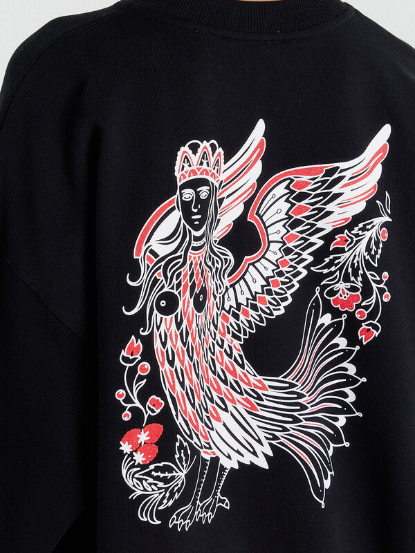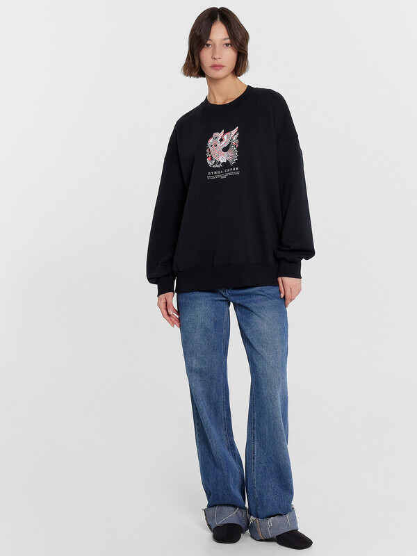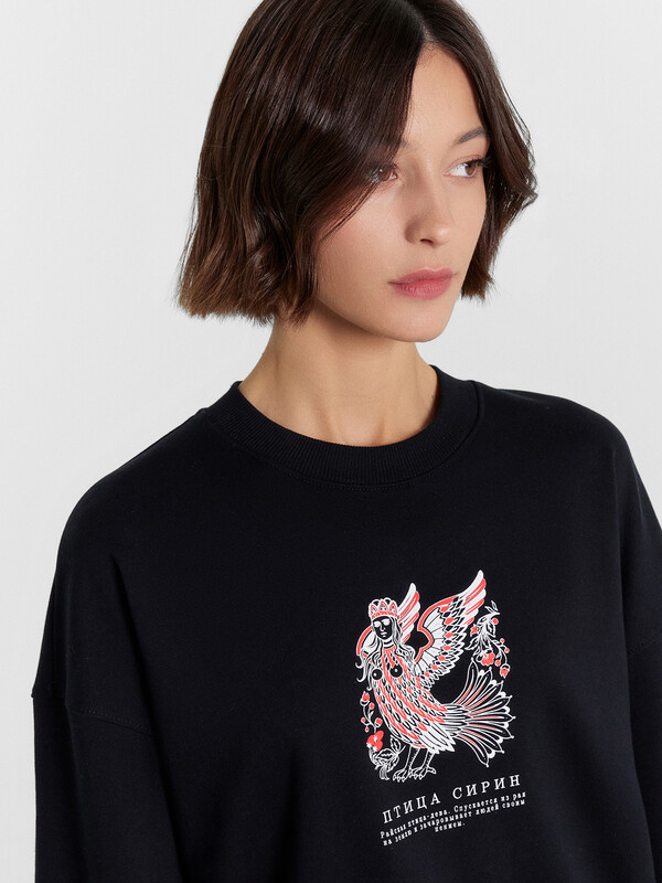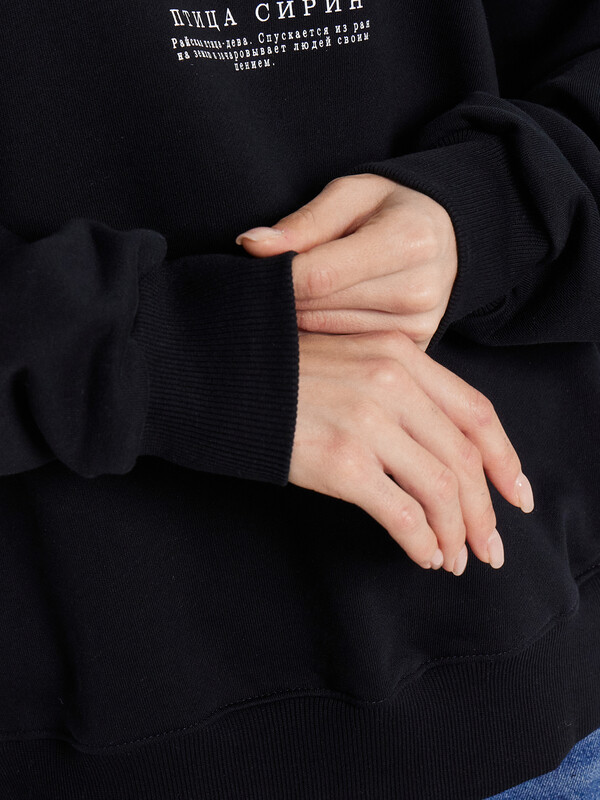 Джемпер силуэта оверсайз. Горловина округлой формы, обработана обтачкой из рибаны. Шов втачивания обтачки по горловине спинки закрыт тесьмой хб. Рукава втачные длинные с отрезными манжетами из рибаны. Линия плеча спущена, пройма углублена. Плечевые швы смещены в сторону переда. По низу джемпера отрезной пояс из рибаны. 100% хлопок Комментарии к товару