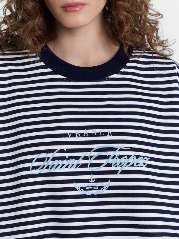 Женский свитшот оверсайз создан для тех, кто ценит комфорт и стиль. Изготовленный из высококачественного футера, он обладает мягкостью и теплотой. Круглая горловина придает ему классический вид, а длинные рукава с манжетами из рибаны обеспечивают удобную посадку. Спущенная линия плеча и углубленная пройма создают свободный и непринужденный силуэт. Эластичный пояс из рибаны по низу изделия добавляет дополнительный комфорт и завершает образ. Этот свитшот легко сочетается с различными элементами гардероба, позволяя создавать стильные и уютные образы на каждый день. Оцените сочетание комфорта и современного дизайна вместе с Mark Formelle!