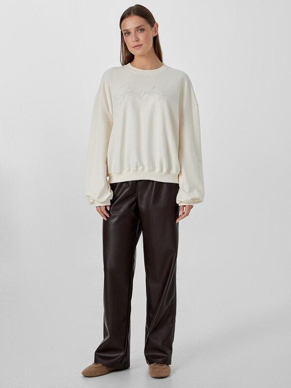 Спущенная линия плеч и длинные рукава на эластичных манжетах обеспечивают полную свободу движений. Этот свитшот подойдет для прогулок, встреч с друзьями или отдыха — он не сковывает и сохраняет форму даже после множества стирок. Универсальный бежевый цвет легко комбинируется с любыми оттенками в вашем гардеробе, делая его базовой вещью на каждый день. Если вы ищете, где купить женский свитшот, который объединяет качественные материалы, современный дизайн и универсальность, эта модель станет отличным выбором. 100% хлопок Комментарии к товару