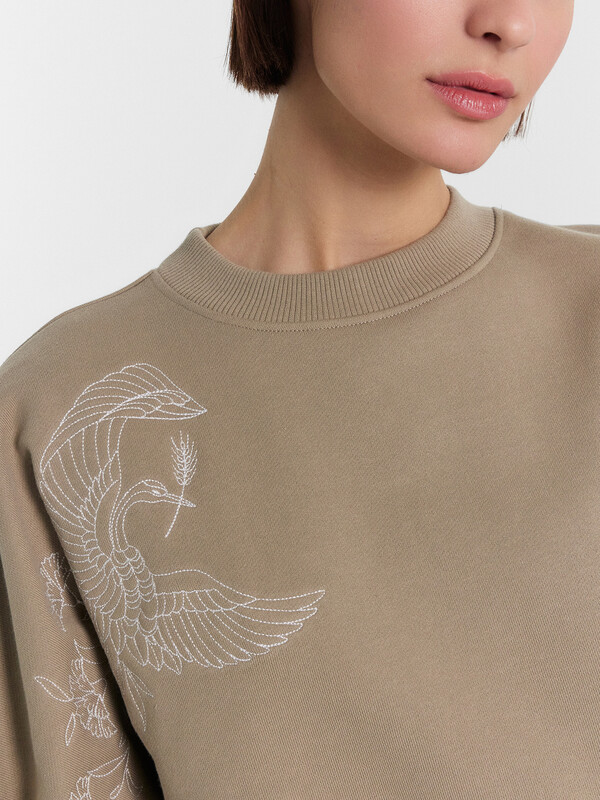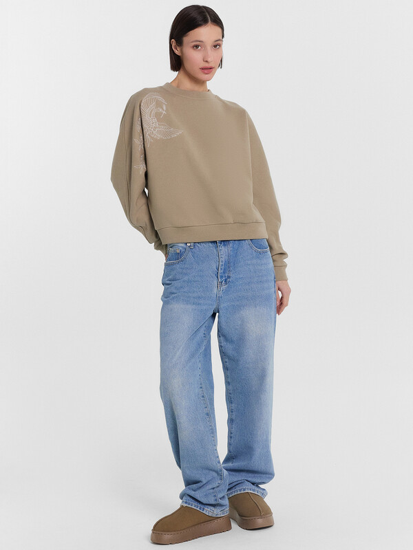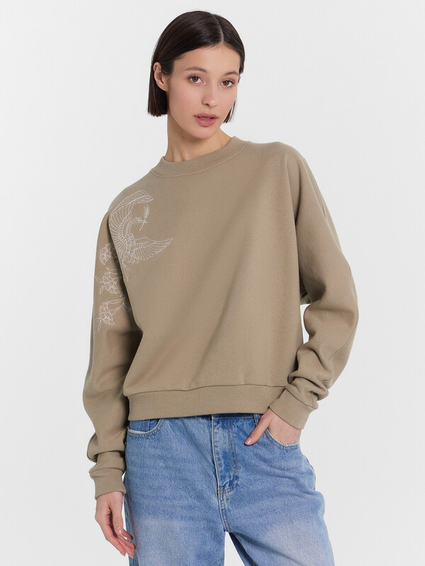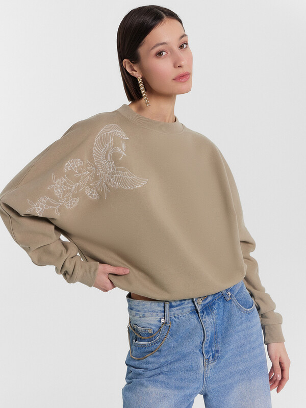 Женский свитшот для стильных и современных образов на каждый день. Модель свободного силуэта с круглым вырезом горловины и длинными рукавами с эластичными манжетами из рибаны обеспечивает особый комфорт. Эта модель выполнена из футера – мягкого и теплого трикотажного материала с плотным плетением, обеспечивающим отличную теплоизоляцию. Футер также отличается высокой износостойкостью и долговечностью, что позволяет ему сохранять свои свойства и внешний вид даже после многочисленных стирок. Свитшот от Mark Formelle станет вашим любимым выбором для повседневных образов, обеспечивая стильный внешний вид и максимальный комфорт. Рекомендуем!