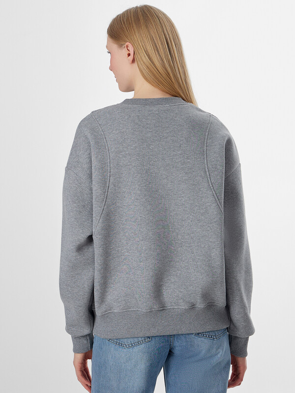 Округлая горловина и длинные рукава с манжетами, а также низ изделия обработаны упругой рибаной. Эта деталь помогает свитшоту сохранять свою форму и плотно, но комфортно облегает запястья и талию.