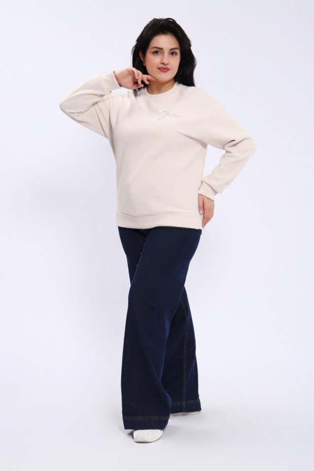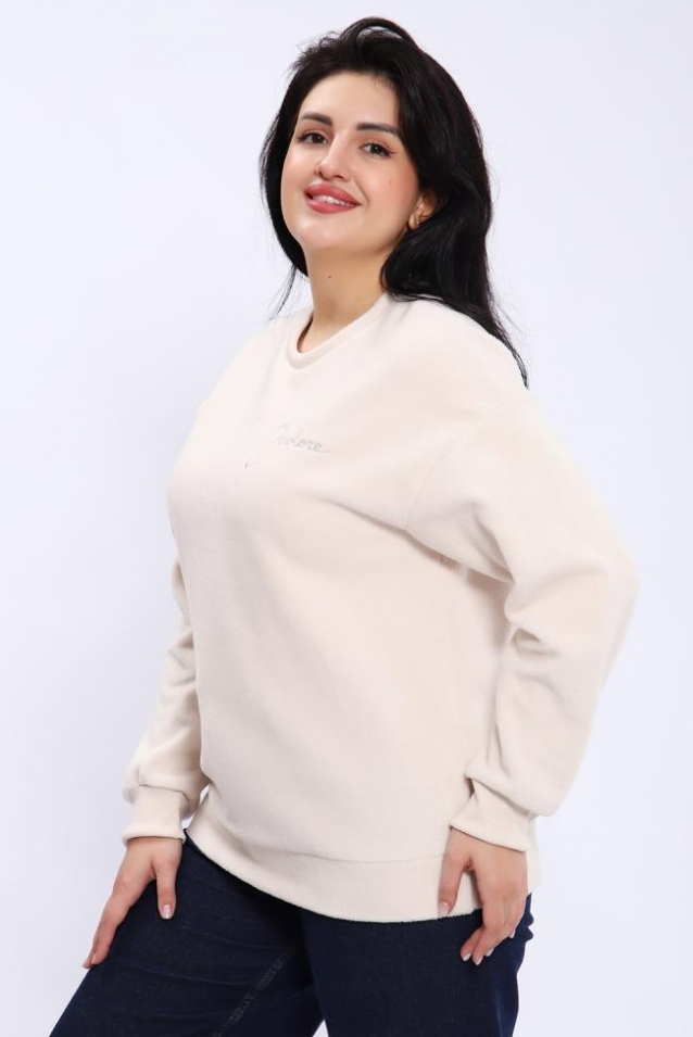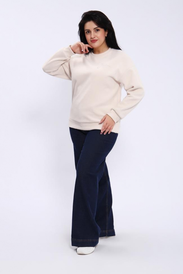 Свитшот женский из футера 3-х нитки барашек качества пенье. Модель свободного кроя в стиле оверсайз, спущенная пройма, горловина и манжеты обработаны эластичным кашкорсе, на груди слева вышивка. Низ джемпера на широком манжете из основного полотна. Толстовка стильная, приятная к телу, выполнена из двухслойного, плотного трикотажа - внутри интерлок -хлопок, с наружи начёс в виде пушистого барашка из полиэстера. Барашек не скатывается, не пиллингуется. Универсальный, тёплый свитшот - необходимая вещь в прохладную погоду, отлично подойдёт для прогулок, активного отдыха, занятием спортом. Длина рукава в таблице измерений указана от начала горловины.