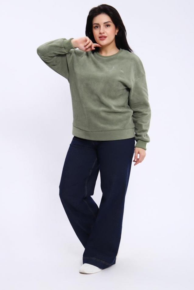 Свитшот женский из футера 3-х нитки барашек качества пенье. Модель свободного кроя в стиле оверсайз, спущенная пройма, горловина и манжеты обработаны эластичным кашкорсе, на груди слева вышивка. Низ джемпера на широком манжете из основного полотна. Толстовка стильная, приятная к телу, выполнена из двухслойного, плотного трикотажа - внутри интерлок -хлопок, с наружи начёс в виде пушистого барашка из полиэстера. Барашек не скатывается, не пиллингуется. Универсальный, тёплый свитшот - необходимая вещь в прохладную погоду, отлично подойдёт для прогулок, активного отдыха, занятием спортом. Длина рукава в таблице измерений указана от начала горловины.