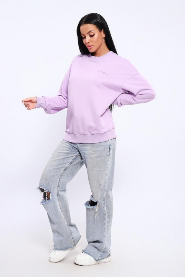 Свитшот женский из высокого качества пенье футера 3-х нитки без начёса. Джемпер свободного силуэта, комфортный, в стиле оверсайз, декорирован вышивкой на груди, что в переводе идеальный. Круглая горловина, спущенная пройма и низ толстовки обработаны кашкорсе. Тёплый, приятный к телу свитшот необходимая вещь в гардеробе женщины любой фигуры и возраста. Длина рукава в таблице измерений указана от начала горловины.