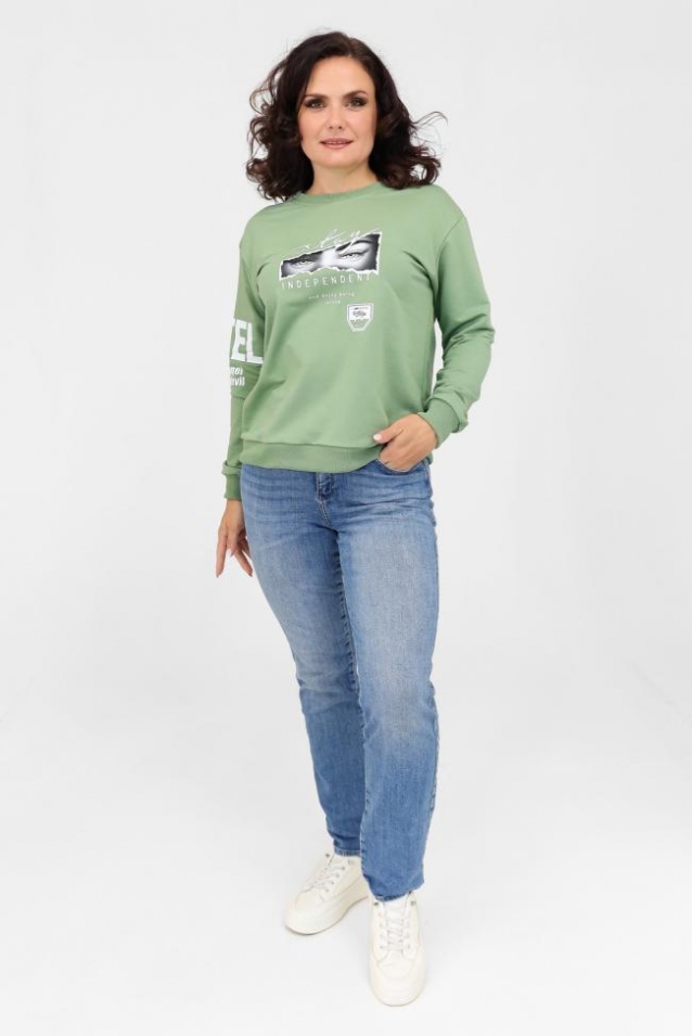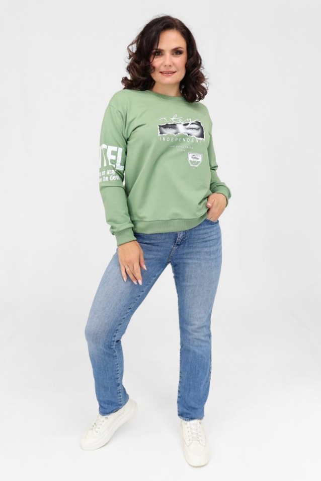 Свитшот женский с принтом больших размеров - это идеальный вариант для тех, кто ценит комфорт и стиль в одежде. Этот свитшот выполнен из футера двухнитки высокого качества, благодаря чему он нежный к телу и приятный на ощупь. Более того, он без начеса, что позволяет носить его даже в теплое время года, не беспокоясь о перегреве. Особенностью этого свитшота является его большой размер, который отлично подходит для женщин с пышными формами. Комфортная посадка придает свободу движения. Вы будете выглядеть привлекательно и стильно в любой ситуации. Кроме того, свитшот - это отличная возможность выразить свою индивидуальность. Прямой крой подчеркнёт Вашу красоту и фигуру, а принт добавит оригинальности и неповторимости Вашему образу. Также свитшот легко стирается и сохраняет свой первоначальный вид даже после многократных стирок. Свитшот с принтом - идеальный выбор для стильных и модных женщин, которые ценят комфорт и индивидуальность. Не отказывайте себе в удовольствии выглядеть стильно и элегантно с нашим свитшотов от KM!