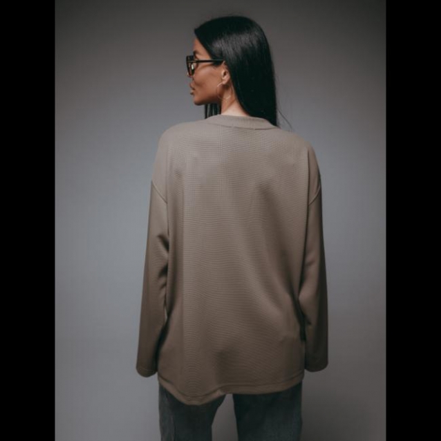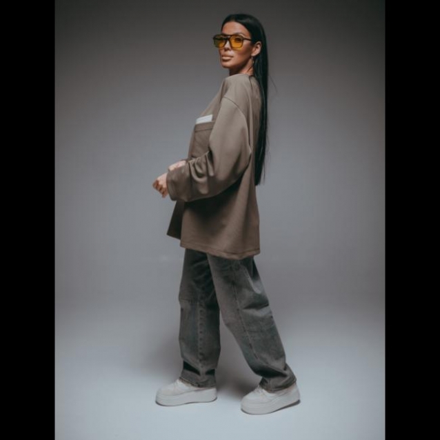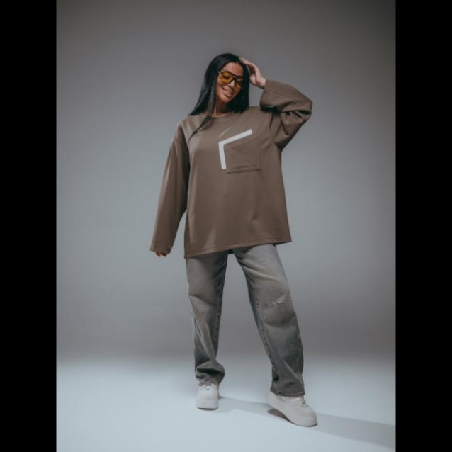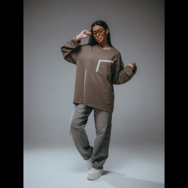 Свитшот прямой - оверсайз со спущенным плечом и длинным втачным рукавом. Полочка с двумя накладными карманами геометрической формы. Комментарии к товару