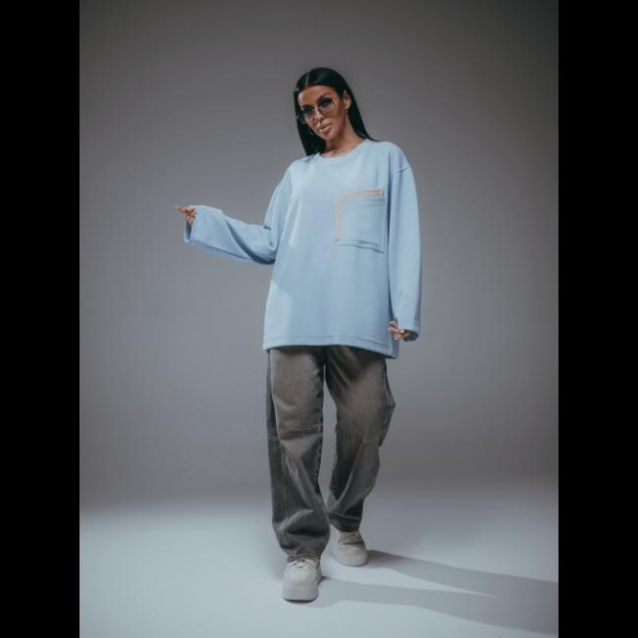 Свитшот прямой - оверсайз со спущенным плечом и длинным втачным рукавом. Полочка с двумя накладными карманами геометрической формы. Комментарии к товару