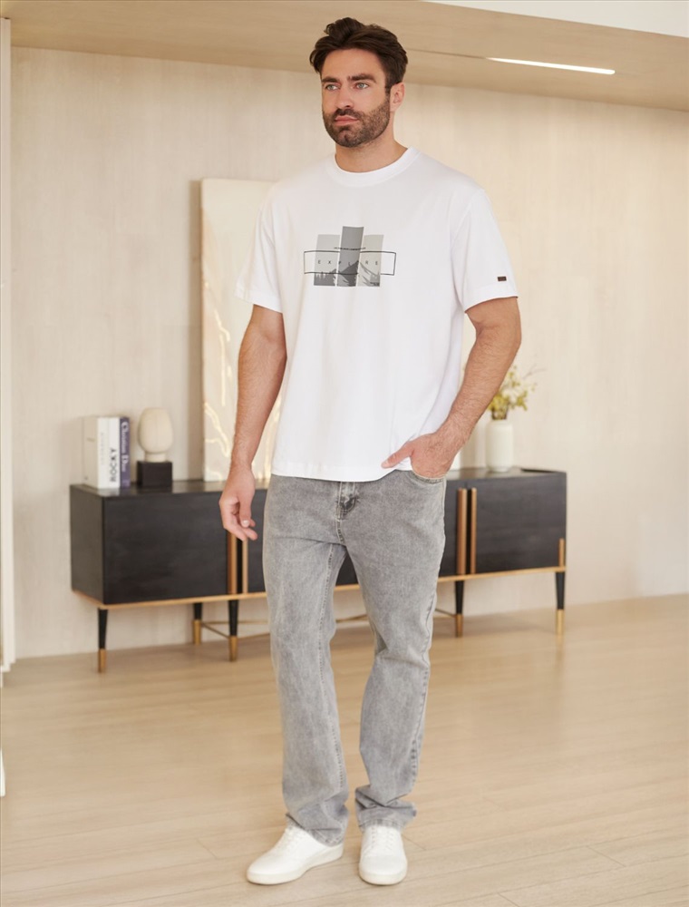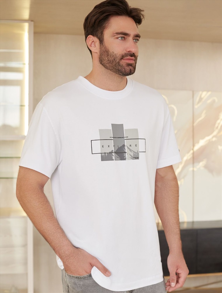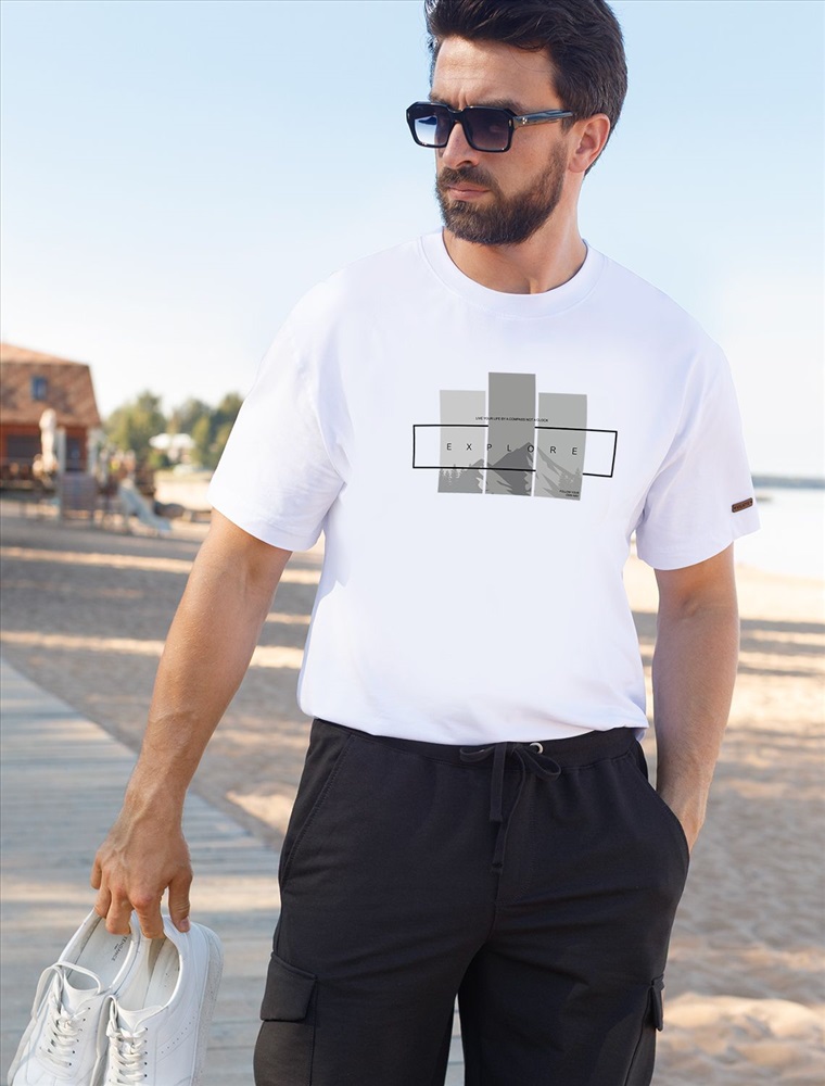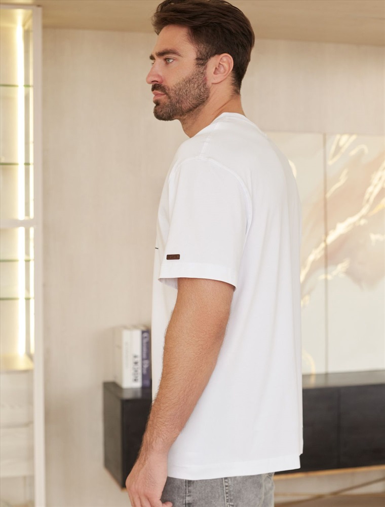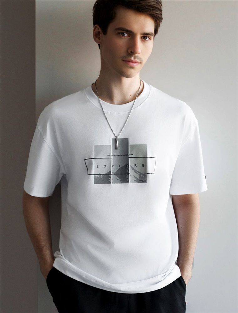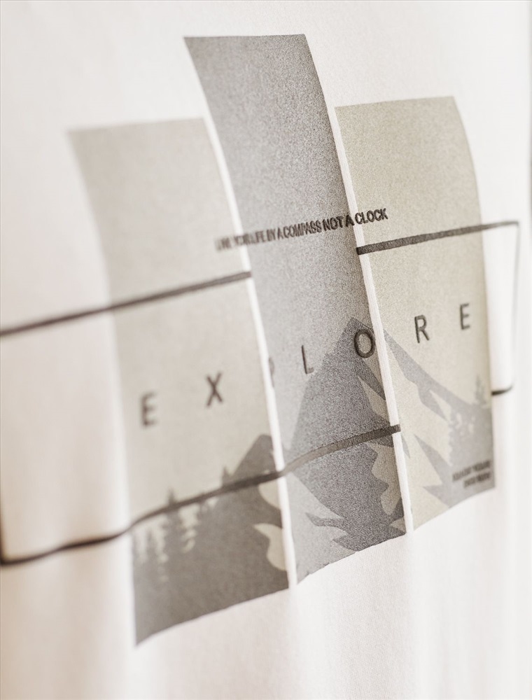 Перевод принта: Live your life by a compass, not a clock, explore, follow your way - живи по компасу, а не по часам, изучай, следуй своему пути. Футболка свободного кроя выполнена из премиального хлопка. Авторский принт нанесен красками с устойчивым покрытием. Благодаря эластану, носить изделие очень комфортно, и оно сохранит свой безупречный вид в течение долгого времени. На рукаве нашивка из эко-кожи с логотипом бренда.