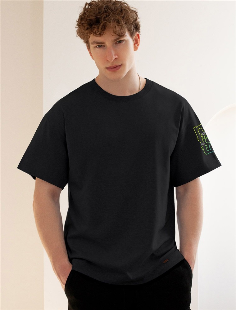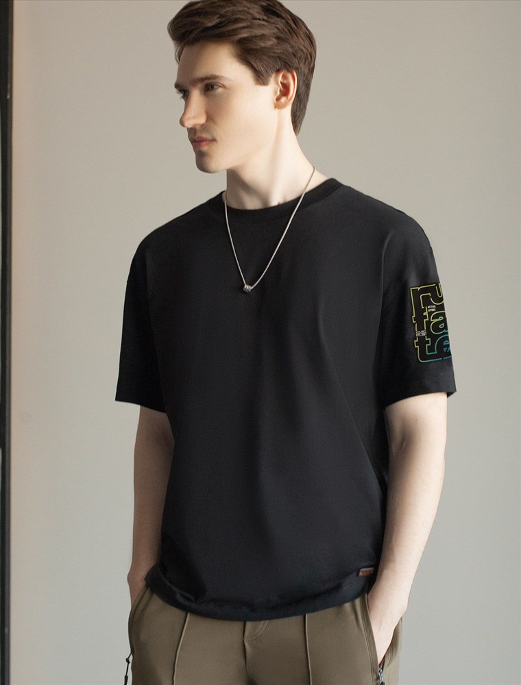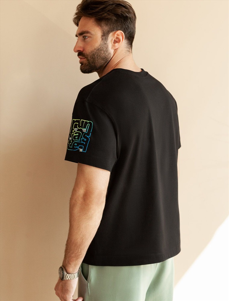 Перевод принта: Run faster, active sport, marathon training, alt dept NYC 1987 - беги быстрее, активный спорт, подготовка к марафону, спортивный колледж Нью-Йорк 1987. Футболка свободного кроя выполнена из премиального хлопка. Авторский принт нанесен красками с устойчивым покрытием. Благодаря эластану, носить изделие очень комфортно, и оно сохранит свой безупречный вид в течение долгого времени. На рукаве нашивка из эко-кожи с логотипом бренда.