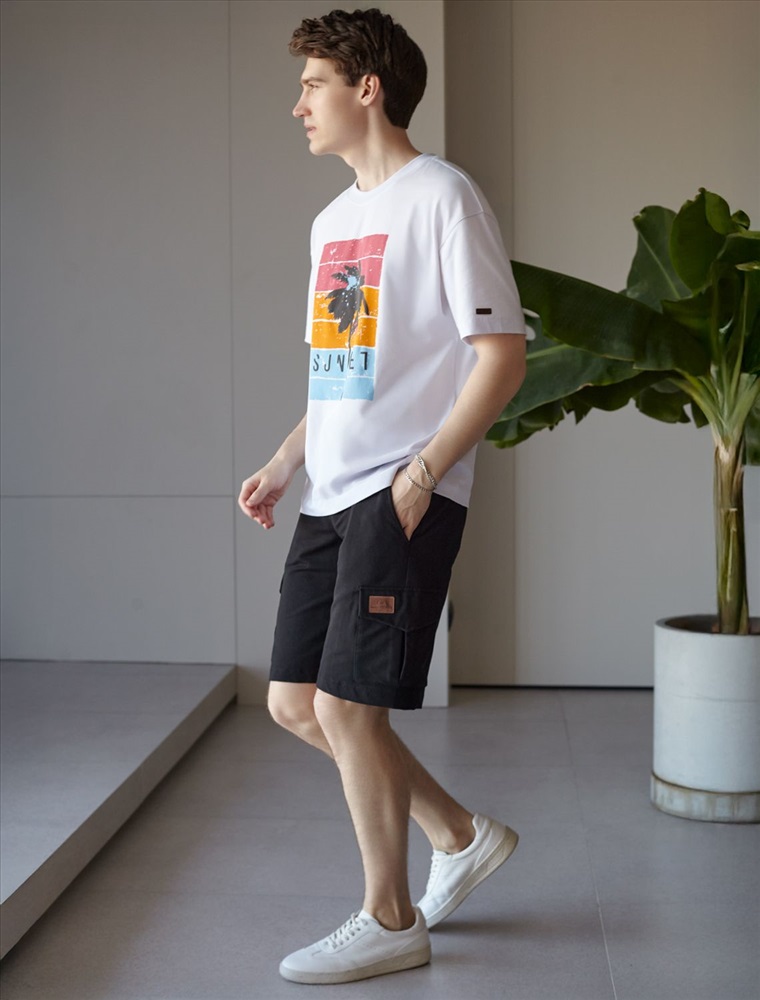 Перевод принта: Sunset - закат. Футболка свободного кроя выполнена из премиального хлопка. Авторский принт нанесен красками с устойчивым покрытием. Благодаря эластану, носить изделие очень комфортно, и оно сохранит свой безупречный вид в течение долгого времени. На рукаве нашивка из эко-кожи с логотипом бренда.