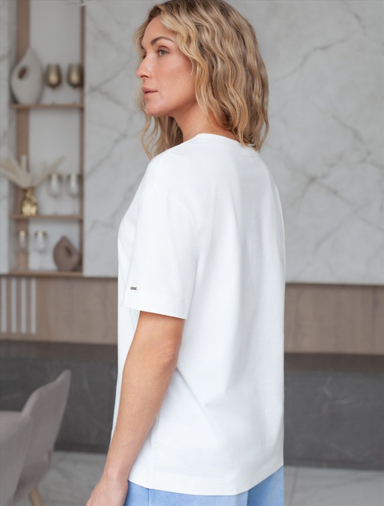 Актуальные цвета подчеркивают современность футболки, делая ее отличным вариантом как для повседневной носки, так и более праздничных случаев. Круглый вырез горловины дополняет общий минималистичный дизайн изделия, создавая аккуратный силуэт. Такой фасон уместен для работы в офисе, для городского стиля, дома, в неформальной обстановке или даже на деловых встречах.