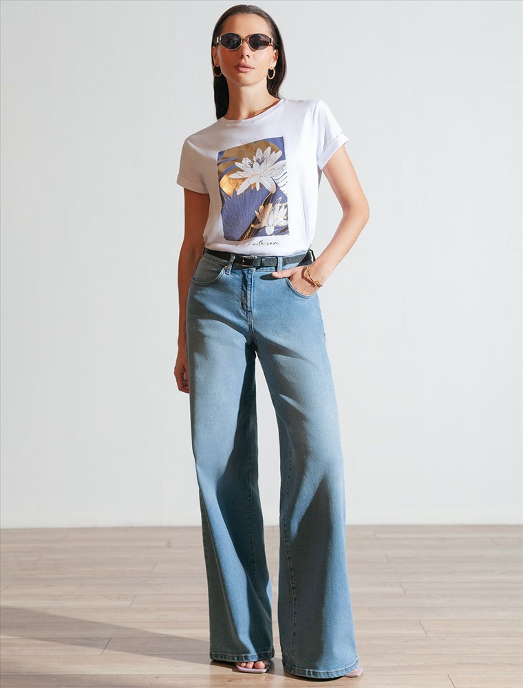 Свободная футболка с принтом из премиального хлопка с эластаном