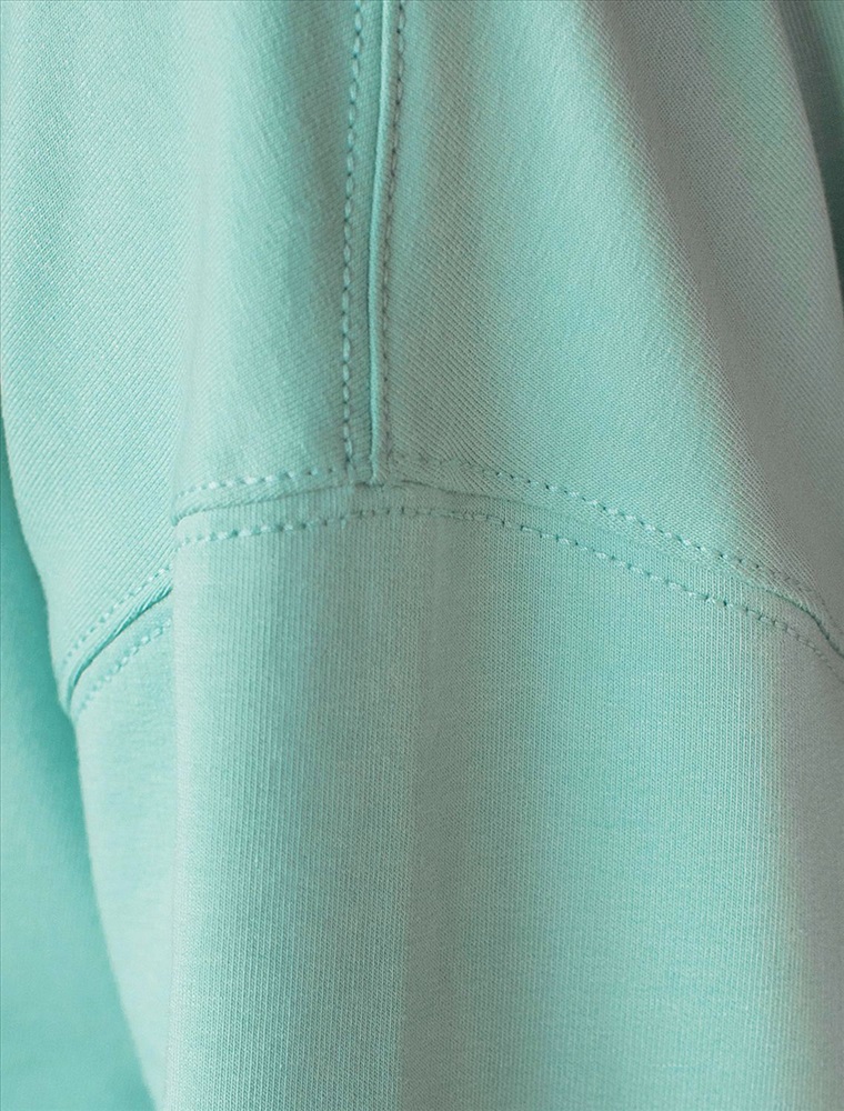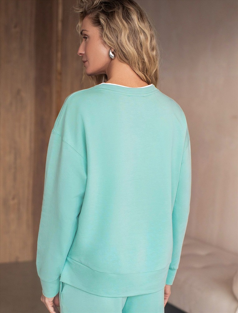 Стильный свитшот мятного цвета из премиального футера двухнитки с эластаном сочетает в себе комфорт и оригинальность. Джемпер выполнен из натурального хлопка, который обеспечивает мягкость и дышащие свойства ткани. Нежный материал дарит ощущение уюта в любое время года, а премиальное качество изготовления гарантирует долговечность и сохранение формы после множества стирок. Особенность изделия — спущенная линия плеча и аккуратные разрезы, которые добавляют современный акцент и делают образ более выразительным. Эффект имитации футболки в виде белой отделки на вороте делает дизайн динамичным и повышает градус стиля. Принт в виде надписи придает индивидуальность, позволяя выделиться без лишней вычурности. Перевод надписи Athleisure mood club - Клуб спортивного настроения. Дополнен металлическим логотипом бренда. Представлена широкая размерная линейка, включая маленькие и большие размеры, что позволяет подобрать идеальный вариант для разной фигуры и роста. Этот уютный свитшот отлично подходит для повседневной носки благодаря своей комфортной посадке и мягкой текстуре. Он станет универсальным элементом гардероба, легко сочетающимся с различными стилями одежды. Свободный джемпер из футера станет отличным выбором для активного отдыха, обеспечивая стильный внешний вид и удобство весной, летом или в прохладную погоду.