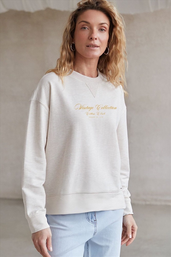 ID товара: 1228148 Состав: 95%Хлопок 5%ПУ Сезон: Демисезон Рукав: Длинный Страна бренда: Россия Страна производства: Китай Стильный свитшот овсяного цвета с эффектом меланж из премиального футера двухнитки с эластаном сочетает в себе комфорт и оригинальность. Джемпер выполнен из натурального хлопка, который обеспечивает мягкость и дышащие свойства ткани. Нежный материал дарит ощущение уюта в любое время года, а премиальное качество изготовления гарантирует долговечность и сохранение формы после множества стирок. Особенность изделия — спущенная линия плеча и аккуратные разрезы, которые добавляют современный акцент и делают образ более выразительным. Принт в виде надписи придает индивидуальность, позволяя выделиться без лишней вычурности. Перевод надписи Vintage collection Cotton club Inspired by 1978 - Винтажная коллекция Cotton Club, вдохновленная 1978 годом. Дополнен металлическим логотипом бренда. Представлена широкая размерная линейка, включая маленькие и большие размеры, что позволяет подобрать идеальный вариант для разной фигуры и роста. Этот уютный свитшот отлично подходит для повседневной носки благодаря своей комфортной посадке и мягкой текстуре. Он станет универсальным элементом гардероба, легко сочетающимся с различными стилями одежды. Свободный джемпер из футера станет отличным выбором для активного отдыха, обеспечивая стильный внешний вид и удобство весной, летом и любое другое время года. Рекомендуем сочетать с артикулами: D44.166, D44.135 Комментарии к товару