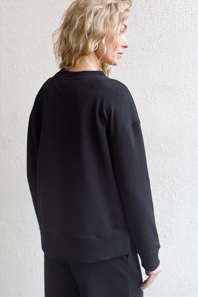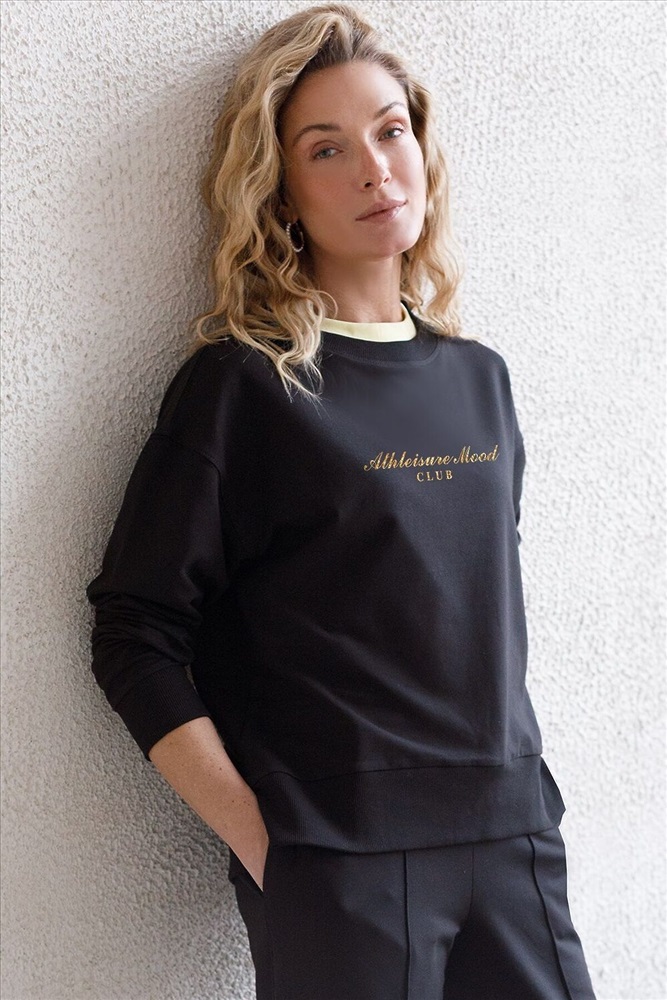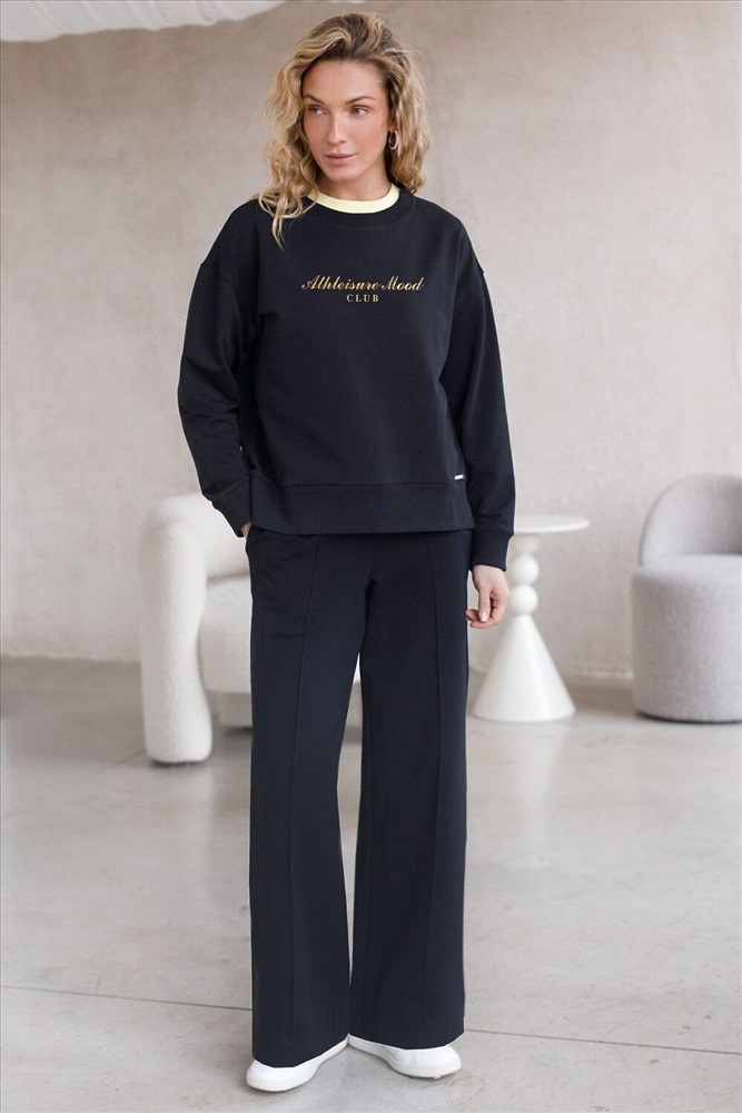 ID товара: 1228150 Состав: 95%Хлопок 5%ПУ Сезон: Демисезон Длина: Миди Фасон: Прямой Рукав: Длинный Страна бренда: Россия Страна производства: Китай Стильный свитшот черного цвета из премиального футера двухнитки с эластаном сочетает в себе комфорт и оригинальность. Джемпер выполнен из натурального хлопка, который обеспечивает мягкость и дышащие свойства ткани. Нежный материал дарит ощущение уюта в любое время года, а премиальное качество изготовления гарантирует долговечность и сохранение формы после множества стирок. Особенность изделия — спущенная линия плеча и аккуратные разрезы, которые добавляют современный акцент и делают образ более выразительным. Принт в виде надписи придает индивидуальность, позволяя выделиться без лишней вычурности. Перевод надписи Athleisure mood club - Клуб спортивного настроения. Дополнен металлическим логотипом бренда. Представлена широкая размерная линейка, включая маленькие и большие размеры, что позволяет подобрать идеальный вариант для разной фигуры и роста. Этот уютный свитшот отлично подходит для повседневной носки благодаря своей комфортной посадке и мягкой текстуре. Он станет универсальным элементом гардероба, легко сочетающимся с различными стилями одежды. Свободный джемпер из футера станет отличным выбором для активного отдыха, обеспечивая стильный внешний вид и удобство весной, летом или в прохладную погоду. Рекомендуем сочетать с артикулами: D44.135, D44.166 Комментарии к товару