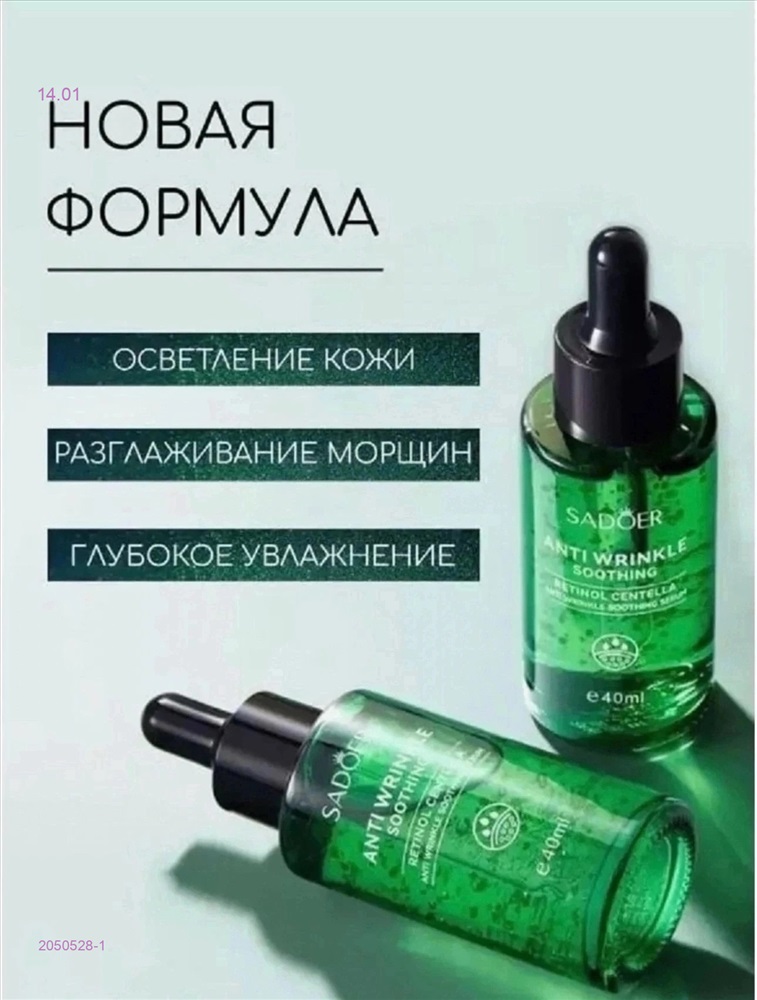 SADOER Сыворотка от морщин антивозрастная, увлажняющая , 40 мл Успокаивающая сыворотка с гиалуроновой кислотой необходима сухой и чувствительной коже для увлажнения и уменьшения раздражения.
