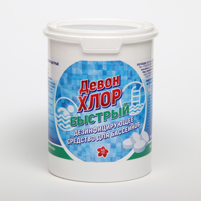 Габариты: 12 x 12 x 15 Страна: Россия В боксе: 12 шт Состав: См. на упаковке Материалы: см. на упаковке Фасовка: по 1 шт Индивидуальная упаковка: Без упаковки Сертификат: Не подлежит сертификации Вес, кг/Объём, л: 0,9 Вид средства: Хлорсодержащие Форма выпуска: Таблетки Девон-Хлор "быстрый" - дезинфицирующее средство для плавательных бассейнов. Обладает бактерицидным и вирулицидным действием Состав: натриевая соль дихлоризациануровой кислоты. Способ применения: перед применением довести уровень pH в пределах 7,0-7,6. Таблетка помещается в скиммер, поплавок-дозатор или в специальный проточный хлоратор. Первичная обработка- 5 таблеток на 10 кубических метров воды. Рекомендуется использовать тестер хлора. К началу приема посетителей остаточное содержание свободного хлора не должно превышать уровня 0,3-0,5 мг/л. Вес: 900 г. Комментарии к товару