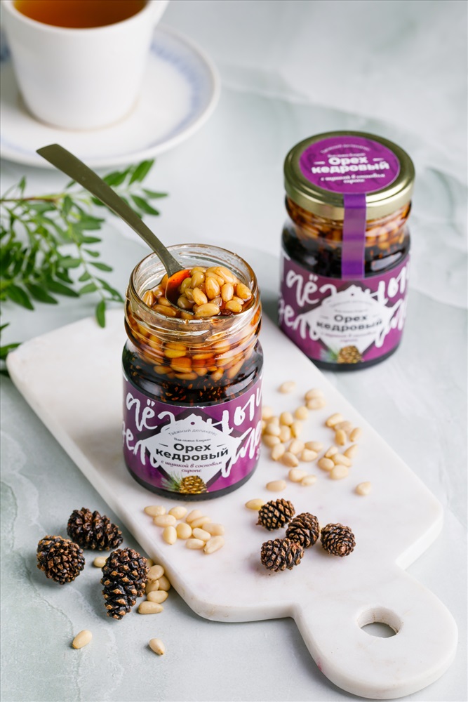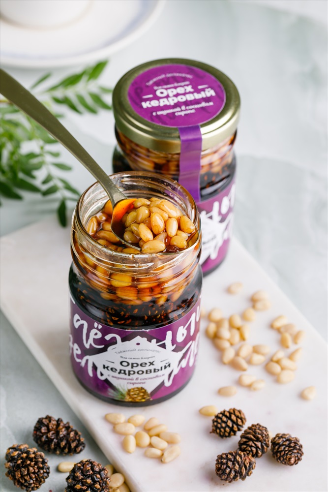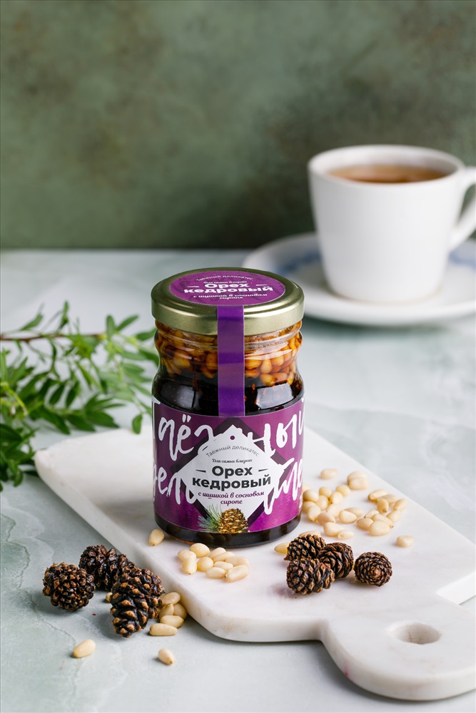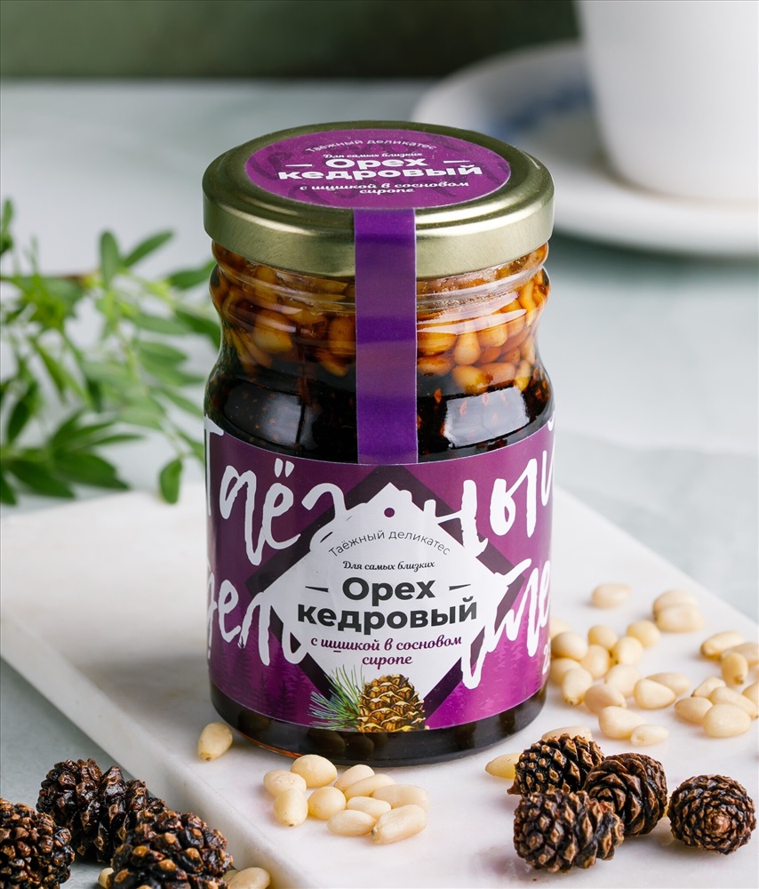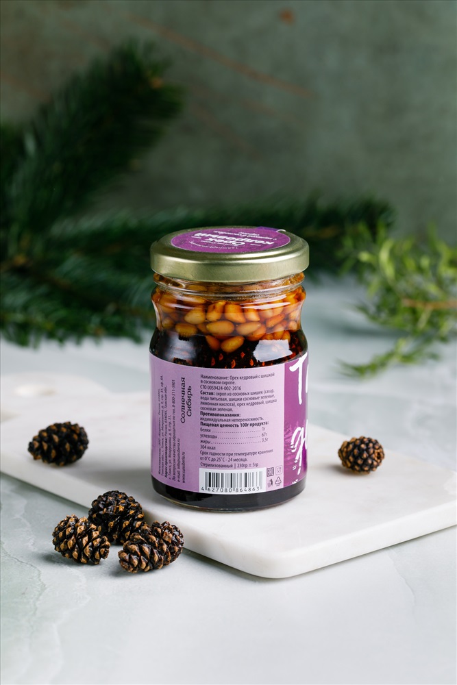 Таежный деликатес "Кедровый орех с Сосновой шишкой" в сиропе / стекло 230 гр / Солнечная Сибирь