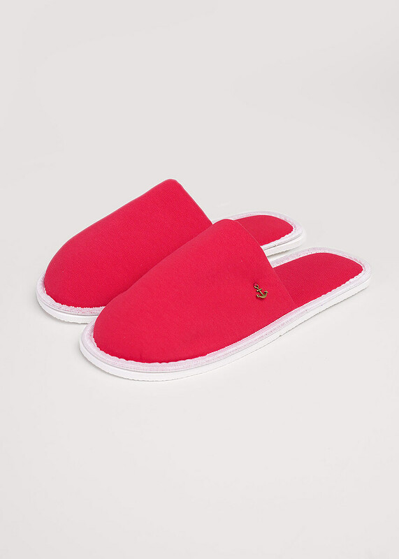 Лёгкие тапки для дома и отдыха с закрытым носом из хлопкового трикотажного полотна интерлок, нашивка металл. Толстая подошва.
