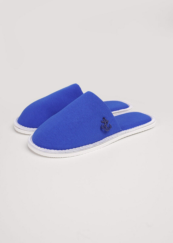 Лёгкие тапки для дома и отдыха с закрытым носом из хлопкового трикотажного полотна интерлок, нашивка металл. Толстая подошва.