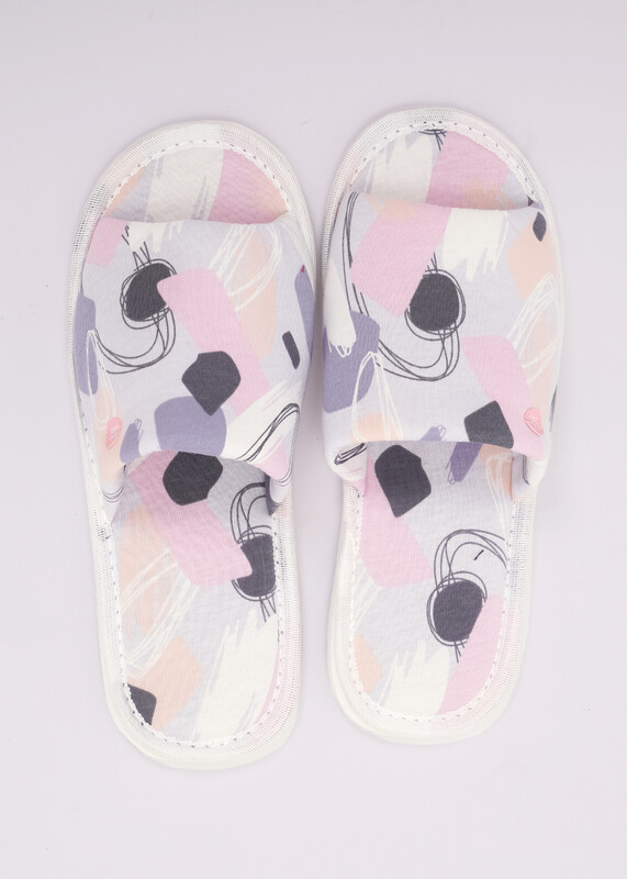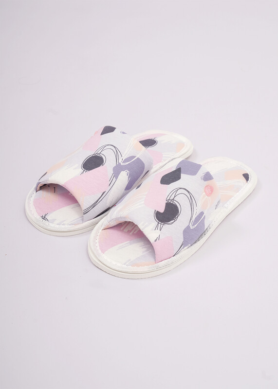 Домашние тапочки с открытым носом из хлопкового трикотажного полотна, сверху нашивка. Толстая подошва.
