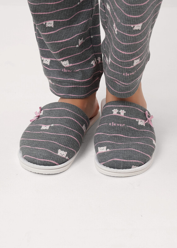 Лёгкие, домашние тапочки с закрытым носом из трикотажного полотна ""вафелька"". В верхней части тапок нашивка бант. Толстая подошва.