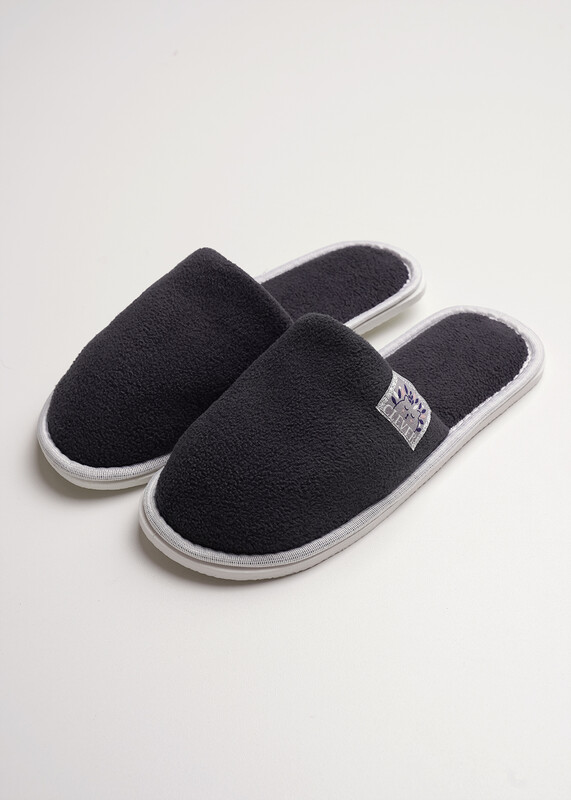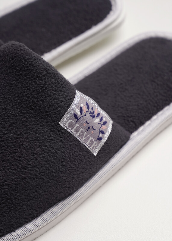 Лёгкие, домашние тапочки для дома с закрытым носом из трикотажного полотна флис, с нашивкой.Толстая подошва.