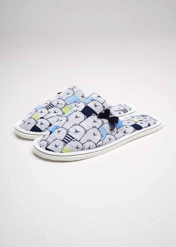 Домашние тапочки с закрытым носом из хлопкового трикотажного полотна, сверху нашивка бант. Толстая подошва.