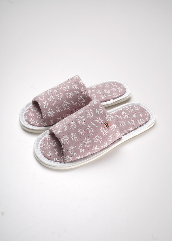 Домашние тапочки с открытым носом из хлопкового трикотажного полотна с эластаном, сверху нашивка. Толстая подошва.