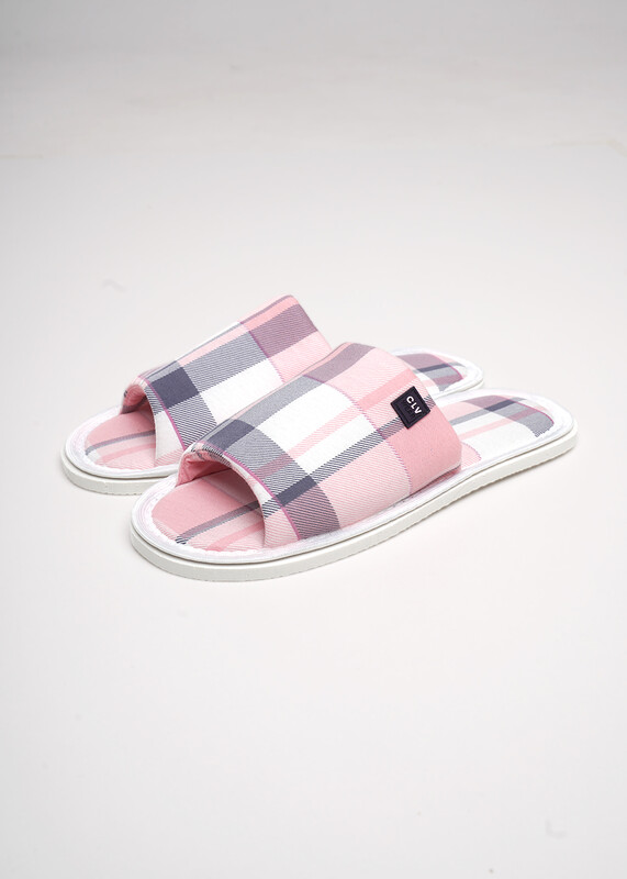 Домашние тапочки с открытым носом из хлопкового трикотажного полотна, сверху нашивка. Толстая подошва.