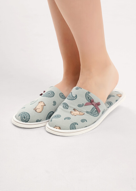 Лёгкие тапки для дома и отдыха с закрытым носом из хлопкового трикотажного полотна, сверху нашивка бант. Толстая подошва.