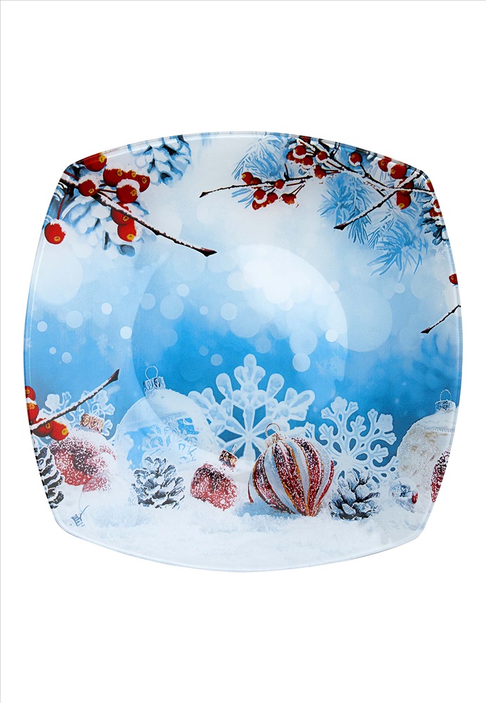 Тарелка большая имеет универсальный размер, отлично подойдет как для подачи блюд, так и для сервировки стола. А за счет дизайна с нежными снежинками и другими символами самого волшебного времени года она станет настоящим украшением праздничного ужина!