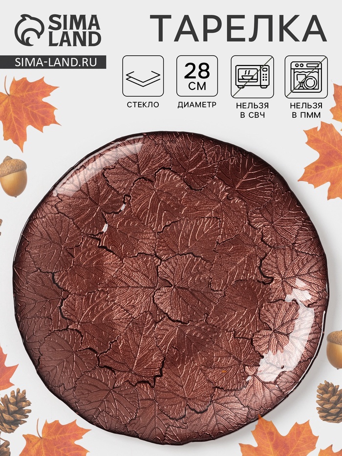 Большая стеклянная тарелка с растительным узором — центральный элемент стола, где важна не только еда, но и атмосфера. Цвет напоминает отблески на старом металле, а рисунок — сухие ветви, застывшие в симметрии.