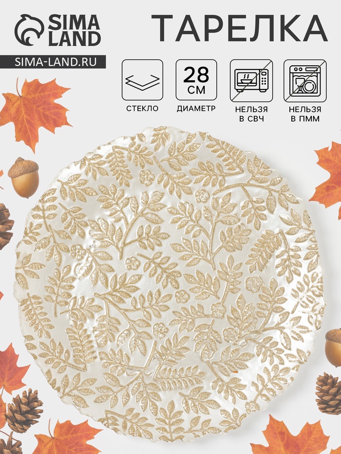 Эта изысканная круглая тарелка диаметром 28 см в золотистом цвете станет настоящим украшением вашего стола. Изготовленная из стекла, она обладает блестящим дизайном и уникальным растительным орнаментом, который добавляет ей особую атмосферу осеннего уюта.