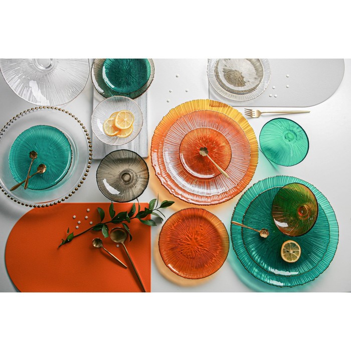 Габариты: 15,5 x 15,5 x 3,5 Страна: Китай В боксе: 48 шт Состав: Стекло Материалы: стекло Фасовка: по 1 шт Индивидуальная упаковка: Картонная коробка Габариты товара: 16 см × 16 см × 1,5 см Сертификат: СТР Набор: Нет Цвет: Бирюзовый Диаметр, см: 16 Тематика: Полоски, полоса Рисунок: Нет Материал: Стекло Вид тарелки: Плоская Можно мыть в посудомоечной машине: Нет Можно использовать в СВЧ-печи: Нет Текстура: С рельефом Особенности: С золотой отводкой Для горячего: Да Стеклянная тарелка Magistro «Фейерверк» диаметром 15,5 см станет ярким акцентом на вашем столе. Её оригинальный рельеф и насыщенный цвет добавят свежести и изысканности вашим блюдам. Высококачественное стекло обеспечивает прочность, устойчивость к царапинам и простоту ухода. Эта стильная и функциональная посуда подчеркнёт вашу индивидуальность и украсит сервировку стола. Преимущества: