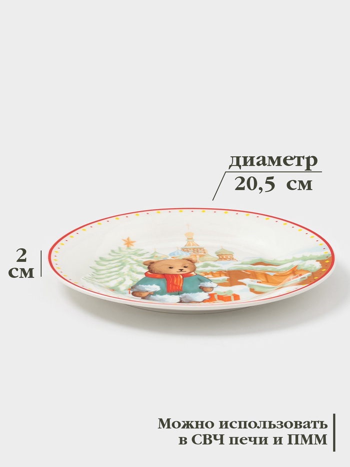 Новогодняя фарфоровая тарелка с московским мишкой — тёплый акцент праздничного стола, который впишется в любую сервировку и подарит атмосферу уюта даже в самый снежный вечер. Её лаконичный белый цвет и деликатная деколь создают баланс между торжественностью и повседневной элегантностью — подойдёт и для семейного ужина, и для встречи гостей.