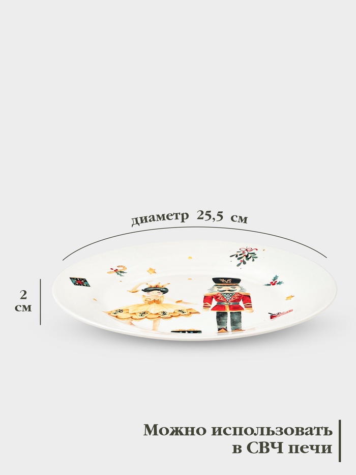 Праздничная фарфоровая тарелка диаметром 25.5 см станет вашим идеальным спутником для создания волшебной атмосферы на новогоднем столе. Искусно оформленный деколь рисунок добавит изысканности и стиля, делая ваш праздничный ужин незабываемым.