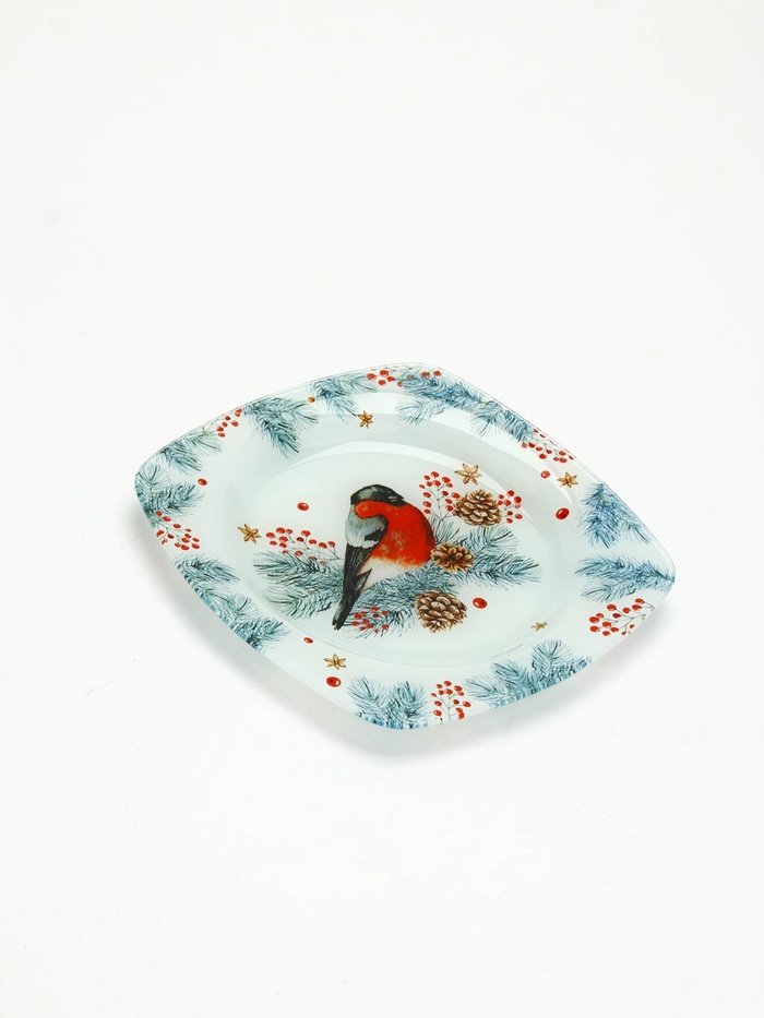 Новогодняя плоская тарелка размером 20 см, которая изготовлена из высококачественного и прочного стекла - это идеальное решение для подарка близким или самому себе!